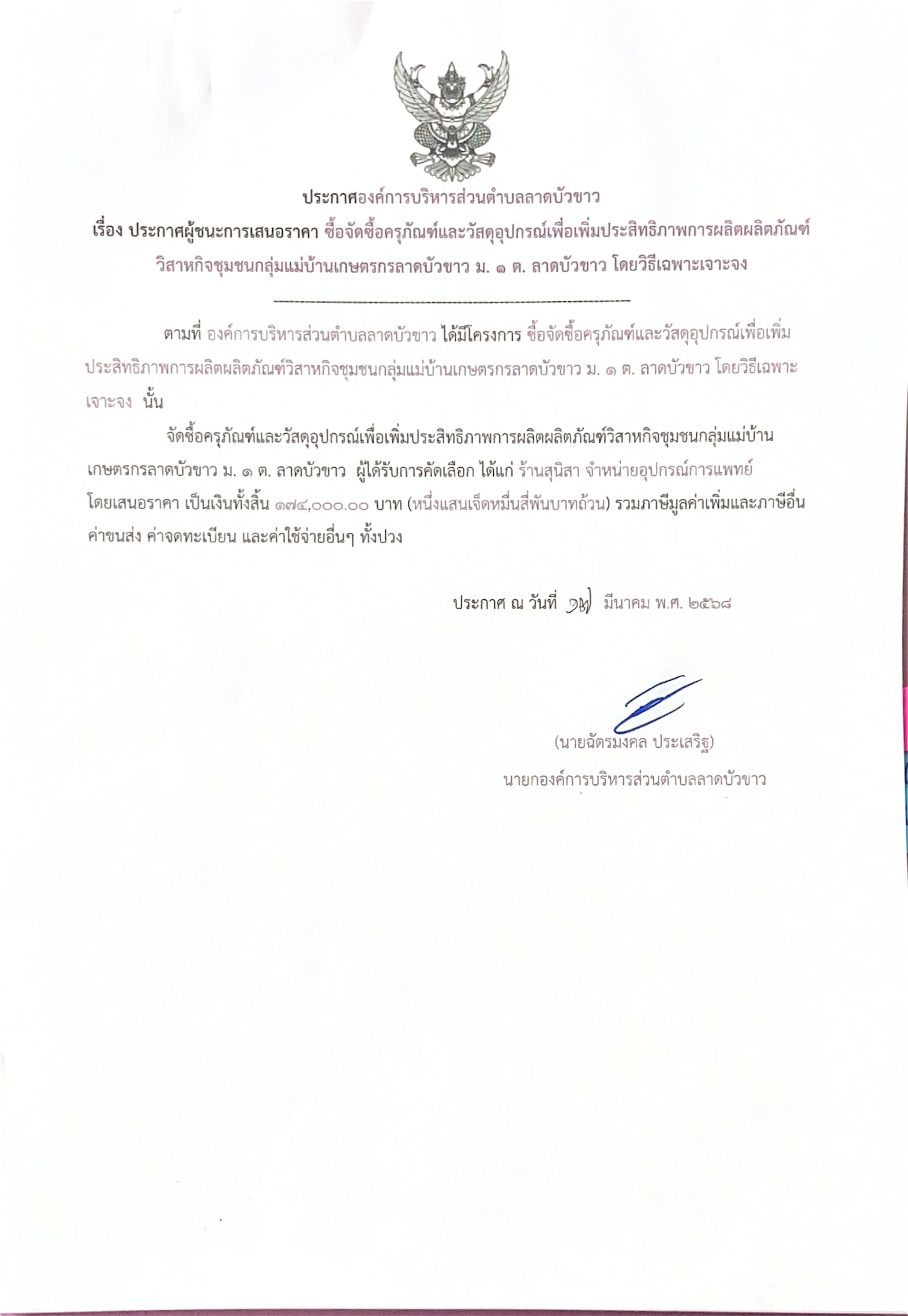 ประกาศองค์การบริหารส่วนตำบลลาดบัวขาว